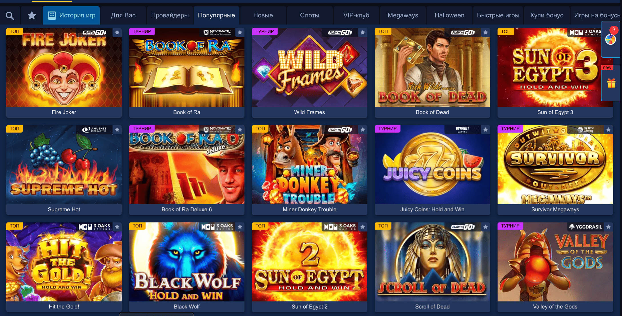 В коллекции представлены и настольные развлечения: рулетка, блэкджек, баккара и покер. Среди провайдеров — Igrosoft, NetEnt, Novomatic, Belatra, Quickspin и другие.